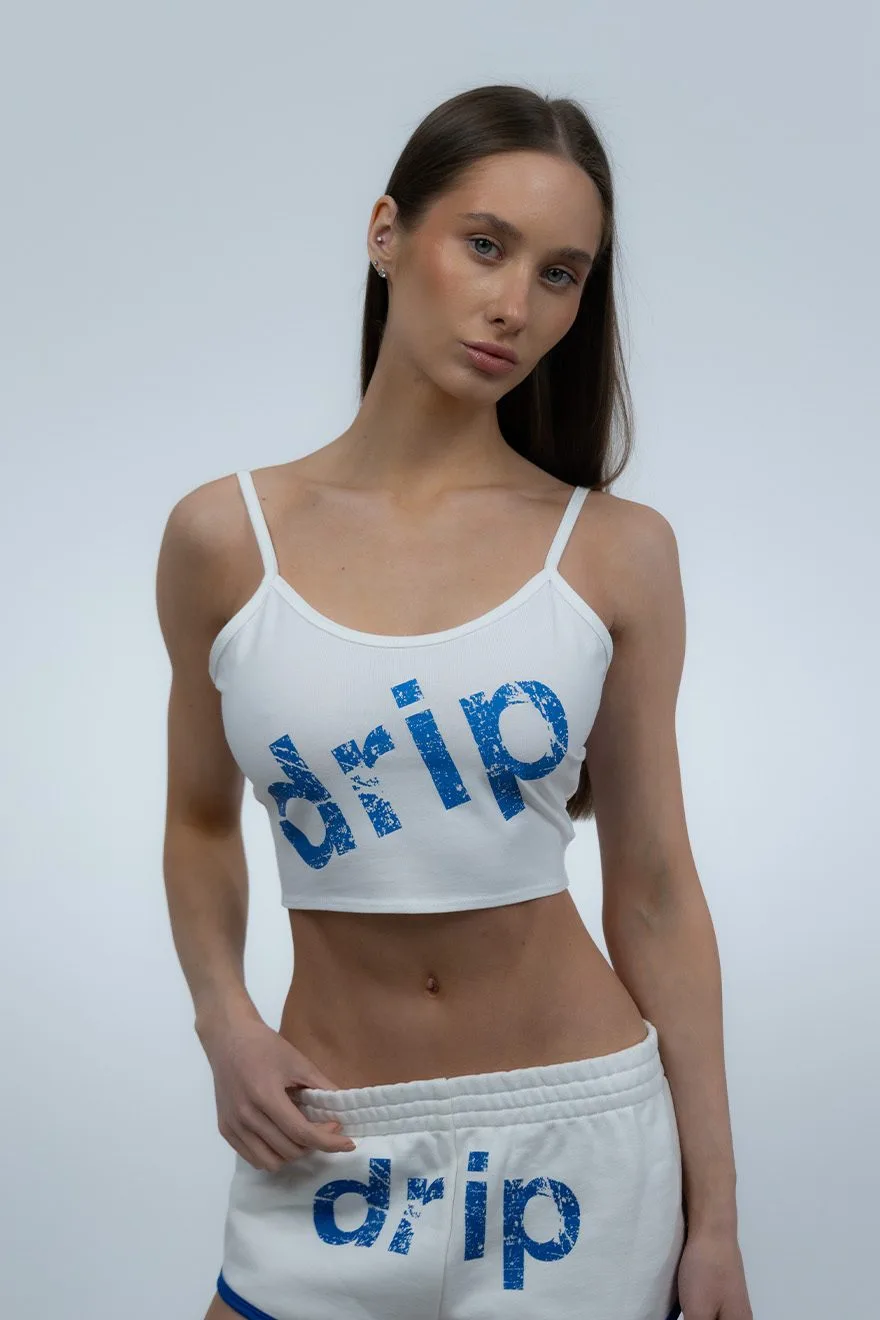 Топ из легкого материала 92% хлопок, 8% лайкра. Винтажный dtf логотип drip и кант в фирменных цветах.