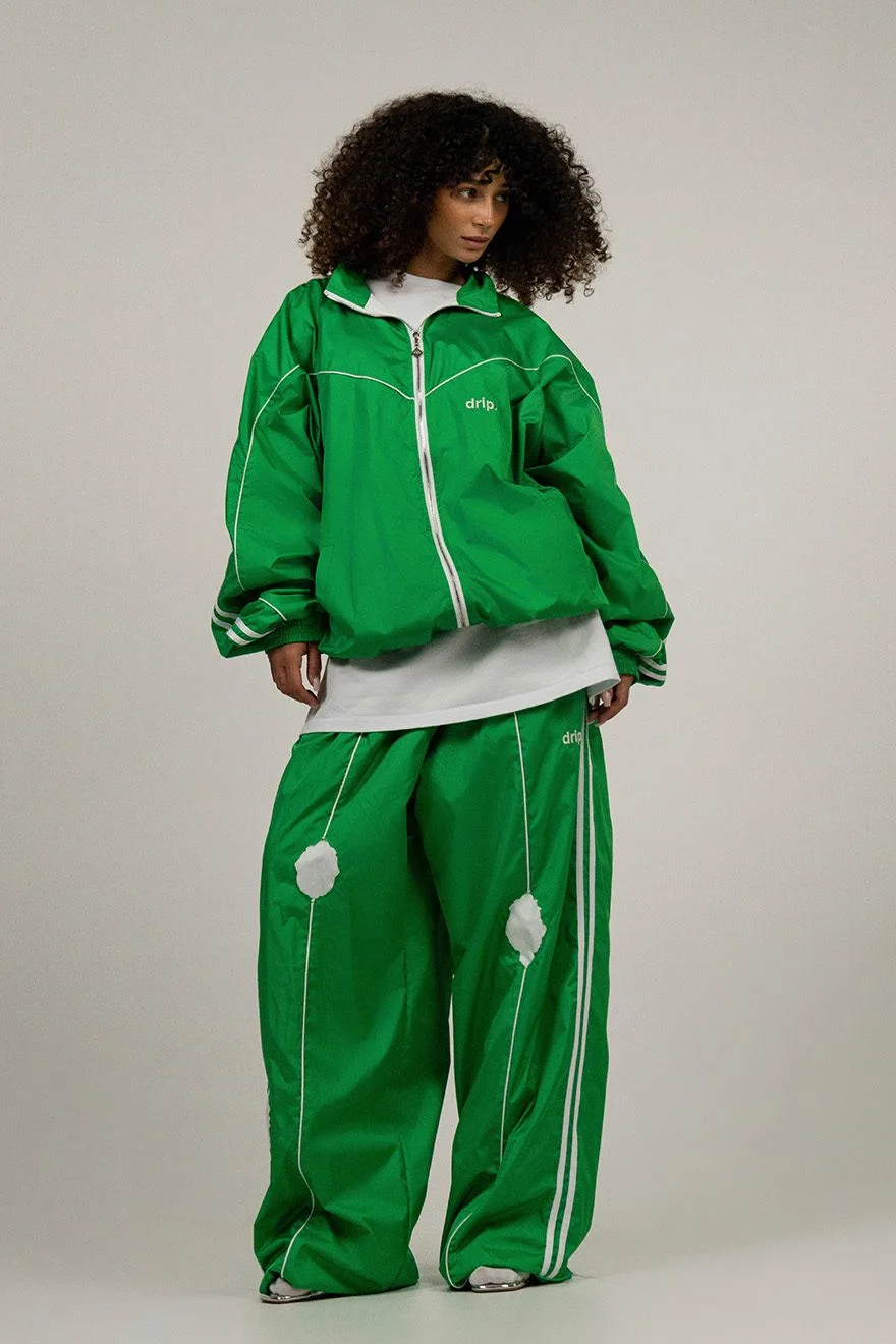 Зипка оверсайз из плащевой ткани с подкладом из белой сетки. Два белых лампаса по бокам. Вышитый логотип drip. слева на груди.